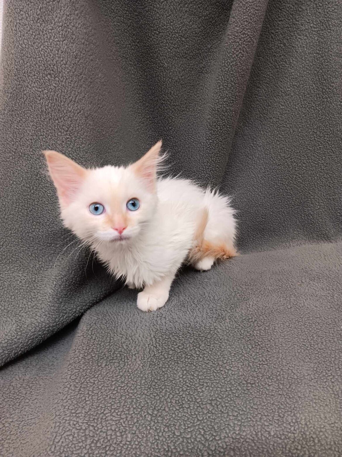 “STORM”, a gorgeous, sweet and spoiled creme and white short haired kitten, was part of a large group of cats left at our back door. This sweet young Siamese mix is now ready for you to continue the spoilage as she’s another one that we’ve spent a lot of time with and come pre-spoiled.— McCook Humane Society