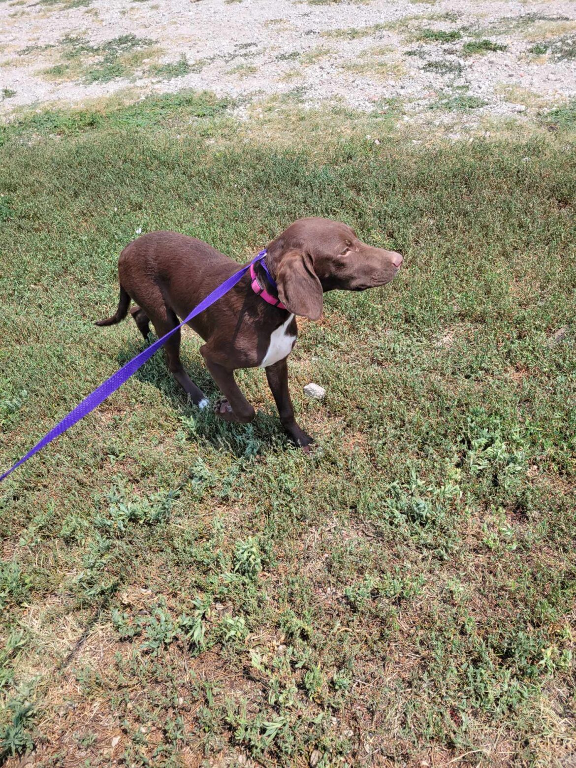 “FIONA”: Single female seeks companion who enjoys outdoor activities. Fiona is a chocolate and white German Shorthaired Pointer mix who was found as a stray and brought to us. This sweet and super girl wasn’t claimed and is now available for adoption. Come fall in love with the young beauty.