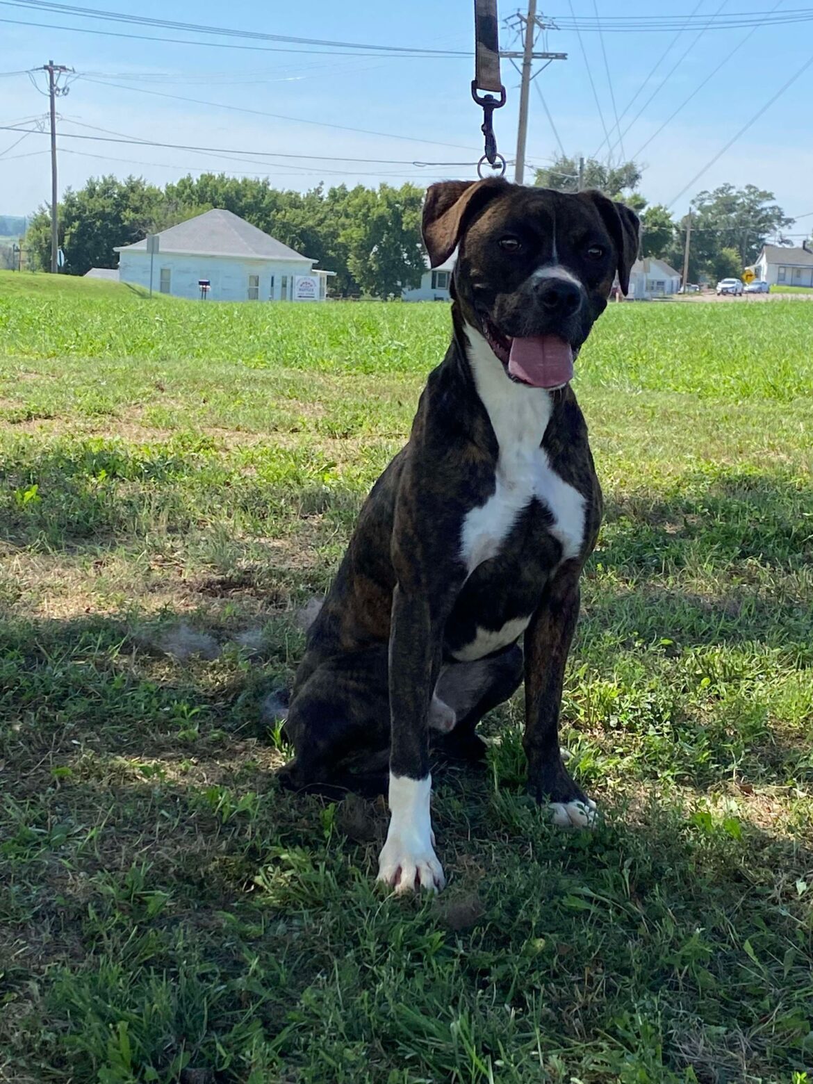 “DUBLIN”, a handsome young brindle boxer mix who was brought in with his pals Clover, Kieran, and Guinness. He was brought in due to his previous owner not being able to give him the care he needed. Dublin is very sweet and loving and would make a wonderful companion for any household.—McCook Humane Society