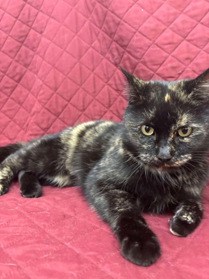 “NERFUL” is a beautiful Tortoiseshell, that came in with her best pals Purr-sephone, Pawdius ,And Cameow. They are all very laid-back cats that would love to spend the day sunbathing and relaxing on the couch. Come meet this pretty group of cats.